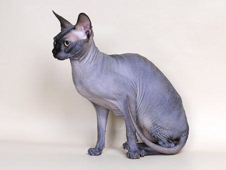 Эту породу отличает практически полное отсутствие шерсти. Кожа кажется бархатистой и невероятно нежной на ощупь. Неземная внешность и высокий интеллект делаю сфинксов очень популярными домашними питомцами. Самая популярная в России порода бесшерстных конек – Донской сфинкс. Примечательно, что все «голые» кошки превосходно влияют на самочувствие владельца. Их сильная энергетика и тепло согревают хозяина в прямом и переносном смыслах.